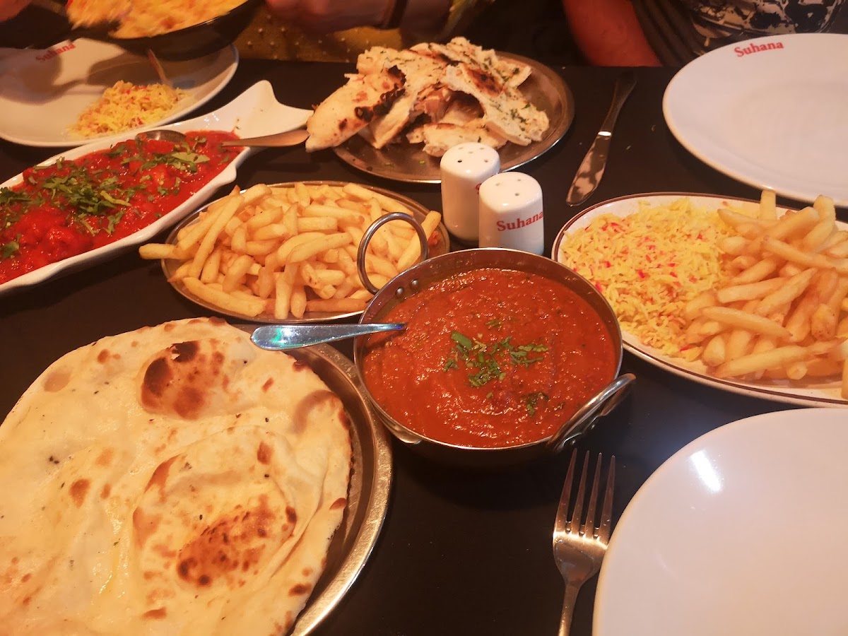 Suhana's signature dishes include the flavorful Meat Thali, a perfect combination of meats, rice, and curries, served in traditional style. Another standout is the Tandoori Chicken Sashlick, with tender chicken cooked to perfection in a tandoor oven, packed with smoky flavors. Their cakes also make for a delightful treat after your meal, perfect for those with a sweet tooth.
